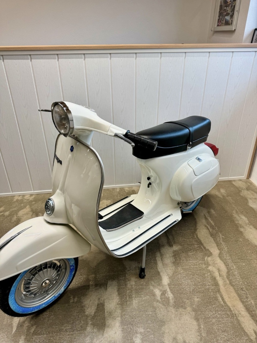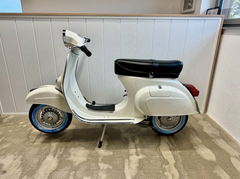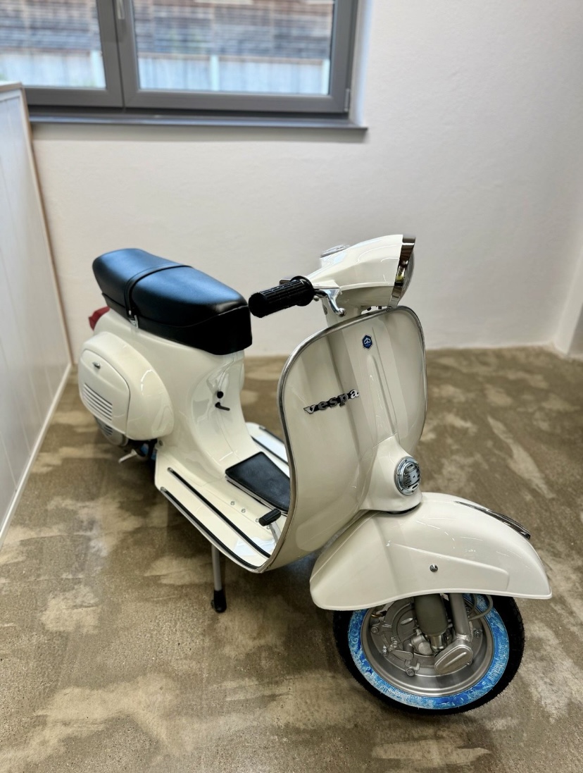 Hier steht eine wunderschöne Vespa 125 Primavera in einer wunderschönen Weißdorn 715 (Biancospino ) Farbe. Die Vespa wurde vor zwei Woche komplett restauriert .Der Motor wurde überholt , mit deutschen Papieren. Die Vespa lässt sich sehr gut fahren und Sie können bei Interesse eine Probefahrt machen .