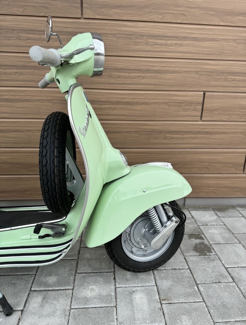 Hier steht eine wunderschöne, komplett restaurierte Vespa Gtr aus dem Baujahr 1969 in der wunderschönen Farbe Pastellgrün 399. Die Vespa hat TÜV bis 2025 und hat deutsche Papiere .